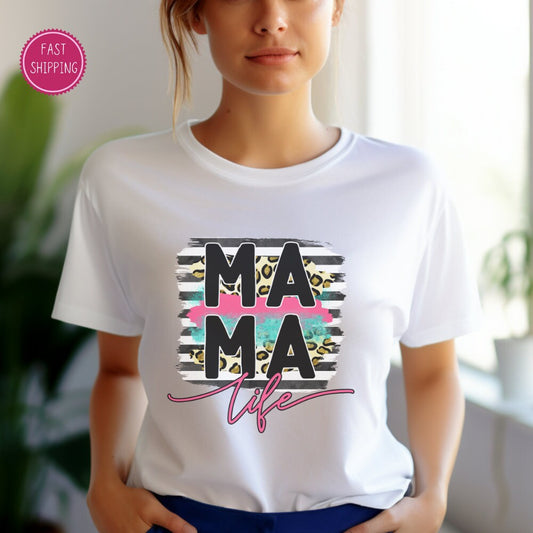 Modern 'MAMA Life' T-Shirt, Leopard Print T-shirt, Mothers Days Gift, Gift for Mothers Day, Gift for Mom, Short Sleeve t-shirt