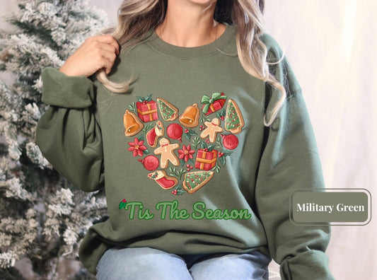 Gingerbread Cookie Heart Winter Shirt, Christmas Sweatshirt, Cookie Lover Funny Christmas Sweatshirt, Cute Winter Holiday Party Shirt